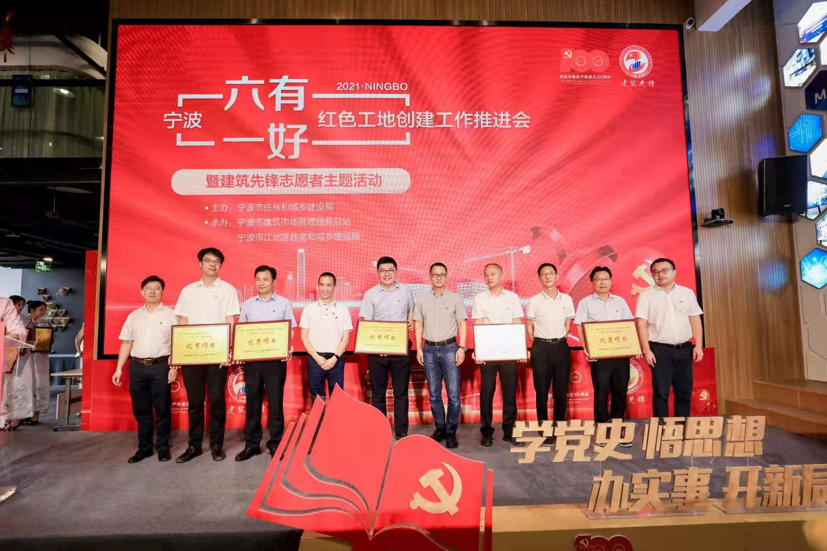? ? ? ?6月25日下午,寧波市建筑行業(yè)“六有一好”紅色工地創(chuàng)建工作推進(jìn)會(huì)暨“建筑先鋒”志愿者主題活動(dòng)在江北區(qū)文創(chuàng)港人才之家舉行。會(huì)上,我公司海曙區(qū)HS16-02-12地塊(寧波工業(yè)互聯(lián)網(wǎng)產(chǎn)業(yè)園)工程項(xiàng)目獲紅色工地創(chuàng)建優(yōu)秀項(xiàng)目榮譽(yù)表彰。