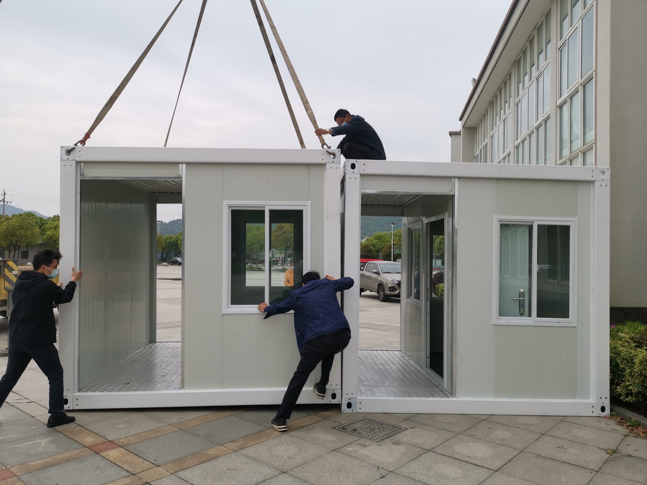 ? ? ? 任務(wù)擬定好后第五分公司連夜設(shè)計(jì)制作核酸采樣移動(dòng)工作站,考慮到露天采樣、雨天地滑,制作時(shí)在底部采用了鋁紋防水防滑板,不容易腐蝕;整體墻面采用了防火隔熱的巖棉夾心板,利于夏日采樣;通道頂部還留了小面積白板,用于掛“采樣通道”led顯示標(biāo)識(shí)牌。為了早日投入使用,制作人員加班加點(diǎn)歷時(shí)28個(gè)小時(shí)終于完成了8個(gè)9平方的核酸采樣移動(dòng)工作站的定制工作,為疫情防控工作略盡綿薄之力。有了這個(gè)核酸采樣移動(dòng)工作站,醫(yī)護(hù)人員在室內(nèi)即可完成受檢人員的拭子采樣操作,再也不用擔(dān)心天氣變化,風(fēng)吹日曬了。