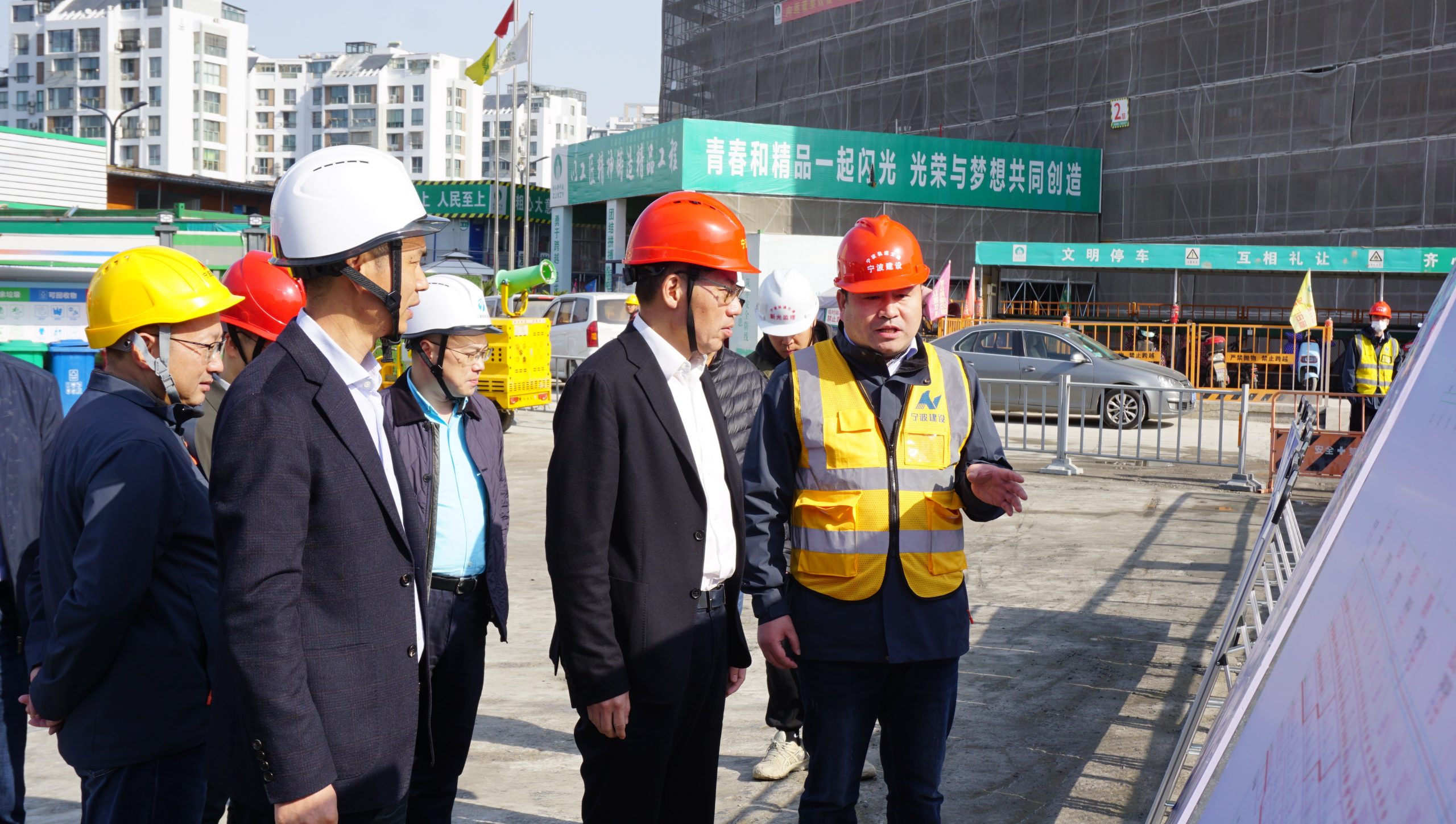 ? ? ? ? 3月7日早晨,市住建局黨組書記、局長金偉平帶隊來到6號線明樓站施工現(xiàn)場,對工地安全文明施工情況進行全面檢查。市住建局黨組成員、總工程師潘伯林,局辦公室、質安處、市安質總站等相關負責人參加了本次檢查。軌道交通集團副總經(jīng)理張付林,軌道交通建設分公司相關負責人以及集團公司黨委書記、董事長陳繼東陪同檢查。