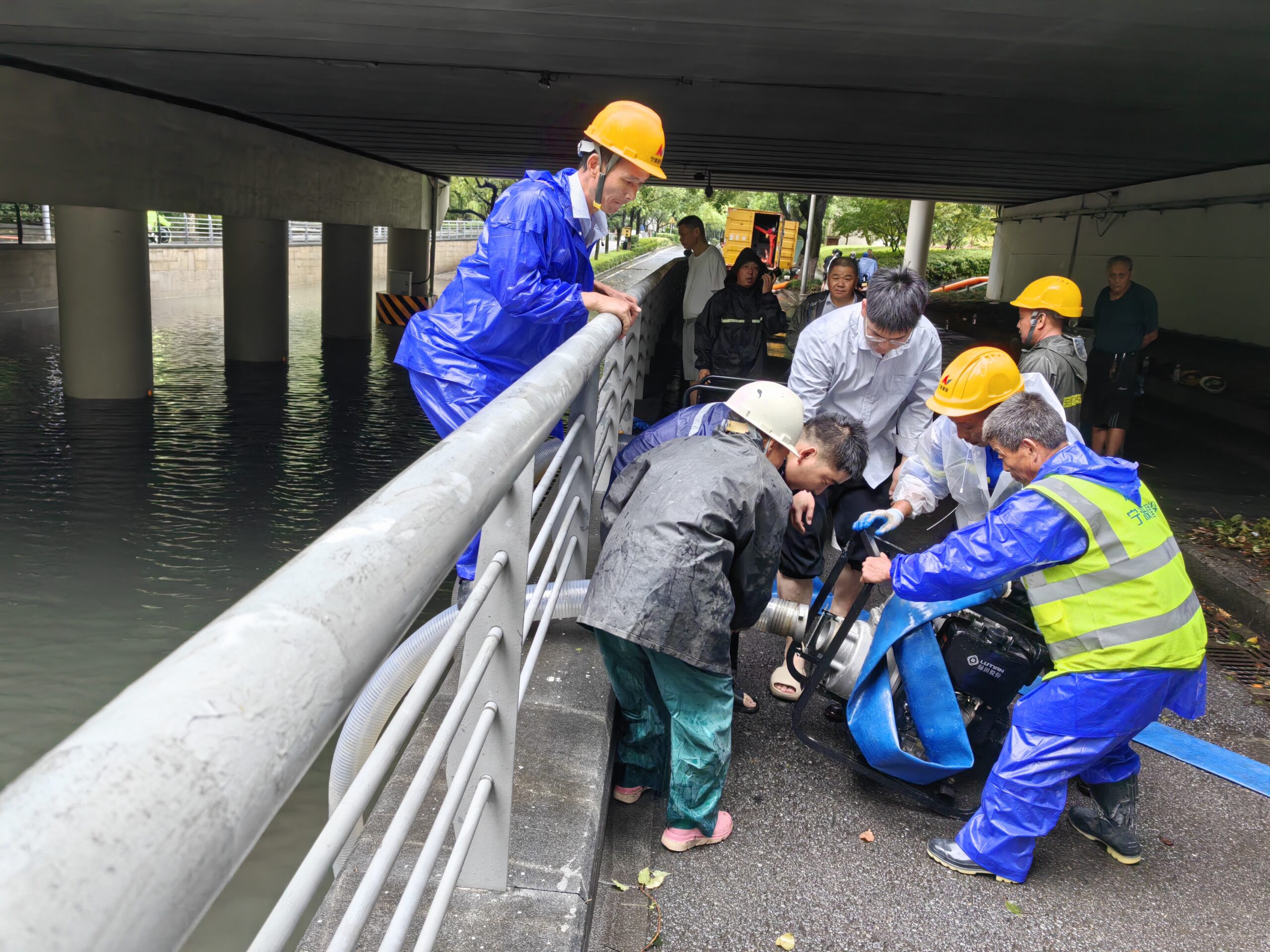 ? ? ? ?受今年8號臺風(fēng)竹節(jié)草影響,寧波城市部分路段積水嚴(yán)重,早上8點(diǎn)左右,寧波建設(shè)集團(tuán)應(yīng)急救援隊組織20余名搶險隊員,攜帶3臺排水泵赴琴橋下橋洞處進(jìn)行強(qiáng)排作業(yè),此時橋洞積水已經(jīng)近2米深,有多部行經(jīng)車輛涉水被淹,搶險隊員立刻組織排水工作,經(jīng)過近6個小時的作業(yè),截止下午2點(diǎn),橋洞積水已基本排干。隨后,救援隊又馬不停蹄前往秀水街改造項目進(jìn)行排水。